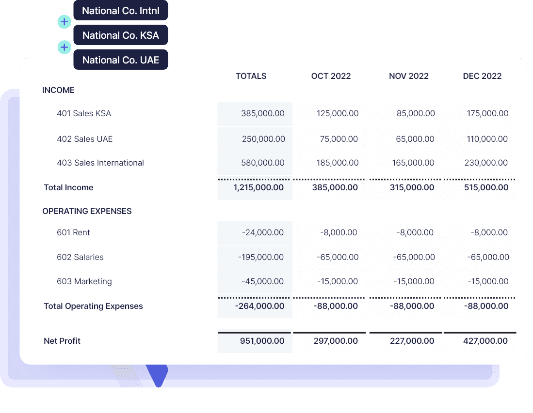 Get total control over your reporting by generating reports by branches, cost centers or projects in addition to organization and multi-organization consolidated reporting.